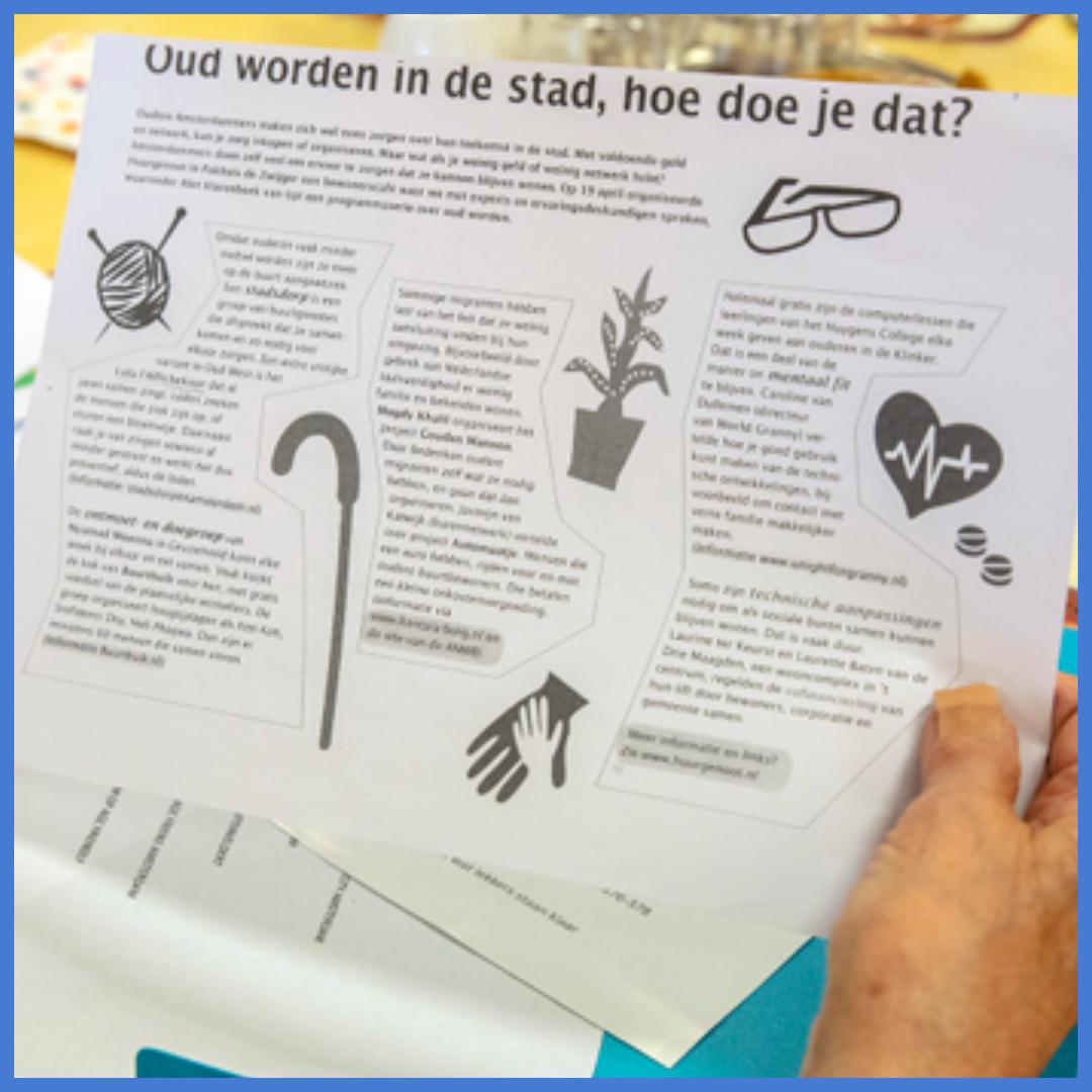 Gezond Actief Ouder Worden is een wijkgericht groepsprogramma voor en door thuiswonende ouderen. Deelnemers wisselen ervaringen en kennis uit, en verkennen actief onderwerpen die zij belangrijk vinden. Nu en met het oog op de toekomst. Gezond Actief Ouder Worden groepen worden ondersteund door een duo van een oudere en een sociaal-agogische beroepskracht die samen zijn geschoold in het programma.